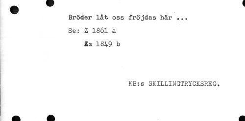 //// Bröder låt oss fröjdas här ... //// Se: Z 1861 a //// Zz 1849 b //// KB:s SKILLINGTRYCKSREG. ////