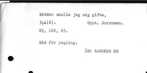 //// '"' * ' ' " " '-** - — -' * -— + //// Bröder skulle jag mig gifta, //// 3;4(6)., Uppt. Durchman. //// ^ A //// R5, 166, 65. //// Råd för yngling. //// ÅBO RANCKEN MS ////