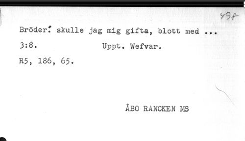 //// , . . ' ' ' * " ' * " < " ' ' -* - - < ' ' //// t*. //// Bröder^ skulle jag mig gifta, blott med ... //// 3:8. Uppt. Wefvar. //// R5, 186, 65. //// ÅBO RANCKEN MS ////