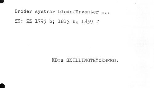 //// Bröder systrar blodsförvanter ... //// SE: ZZ 1793 b; 1813 b; 1659 f //// KB:s SKILLINGTRYCKSREG. ////