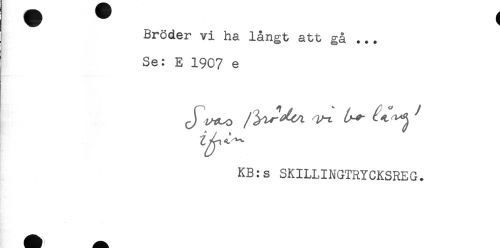 //// Bröder vi ha långt att gå ... //// Se: E 1907 e //// KB:s SKILLINGTRYCKSREG. ////