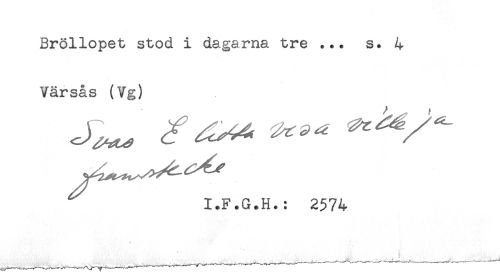 //// Bröllopet stod i dagarna tre ... s* 4 //// Värsås (Vg) //// I.F.G.H.: 2574 ////