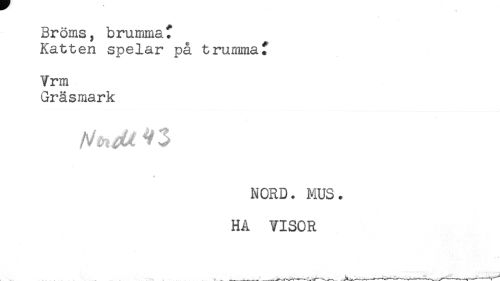 //// Broms, brumma. //// Katten spelar på trummat //// Vrm //// Gräsmark //// < //// NORD. MUS. //// HA VISOR ////