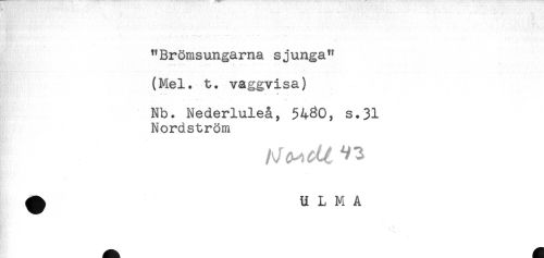//// - //// .. - ... - //// "Brömsungama sjunga?? //// —. .. .... - //// . //// *' //// (Mel. t. vaggvisa) //// —. - //// Nb. Nederluleå, 54^0, s.31 //// Nordström //// . //// - ////