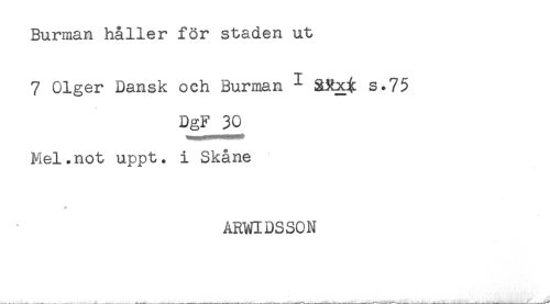 //// Burman haller i or staden ut //// 7 Olger Dansk och Burman I s*75 //// DgFJO //// Mel.not uppt. i Skåne //// ARWIDSSON ////