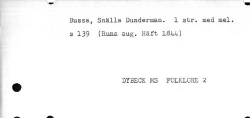 //// Bussa, Snälla Dunderman. 1 str. med mel. //// s 139 (Runa aug. Häft 1344) //// DYBECK MS FOLKLORE 2 ////