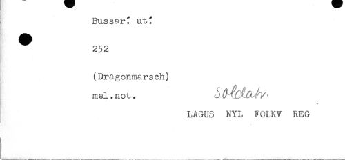 //// Bussarf utt //// j //// ^ 252 //// (Dragonmarsch) //// mel. not. J //// LAGUS NYL FOLKV REG //// t ////