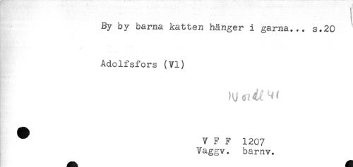//// By by barna katten hänger i garna... s.20 //// * //// HY ' //// Adolfsfors (VI) //// * < //// ^ V F F 1207 //// Vaggv. barnv. ////
