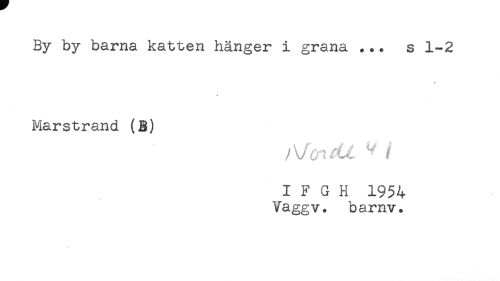//// By by barna katten hänger i grana ... s 1-2 //// Marstrand (B) //// I F G H 1954 //// Vaggv. bamv. ////