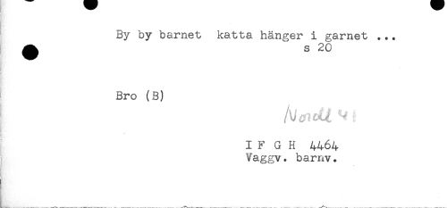 //// By by barnet katta, hänger i garnet ... //// Bro (B) //// I F G H 4464 //// Vaggv. barnv. ////
