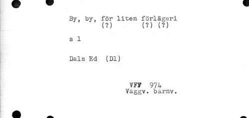 //// K' //// By, by, för liten förlägeri //// (?) (?) (?) //// s 1 //// Dals Ed (Dl) //// VF? 974 //// Vaggv. bamv. ////