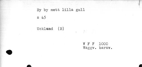 //// By by mett lilla gull //// s 45 //// Uckland (B) //// V F F 1000 //// Vaggv. barnv. ////
