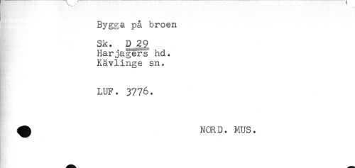 //// Sk. D 2g //// Harjagers hd. //// Kävlinge sn. //// LUF. 3776. //// ^ NORD. MUS. //// - ////