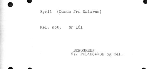 //// Byril (Dands fra Dalarne) //// . //// Mel. not. Nr 161 //// BERGGREEN //// SV. FOLKESANGE og mel. ////