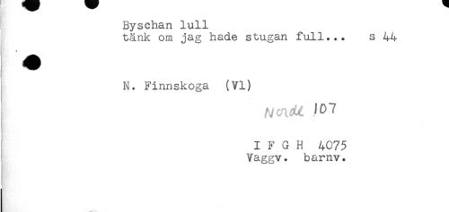 //// I Byschan lull //// tänk om jag hade stugan full... s 44 //// N. Finnskoga (VI) //// { I F G H 4075 //// Vaggv. barnv. ////