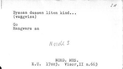 //// Byssan dussen liten kind... //// (vaggvisa) //// Go //// Hangvars sn //// NORD. MUS. //// E.U. 17^83. Visor,II s.663 ////