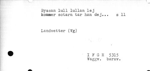 //// Byssan lull lullan lej //// kommer sotarn tar han dej... s 11 //// Landvetter (Vg) //// \ ! * *. ////