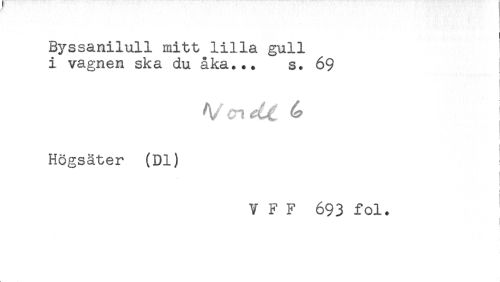 //// Byssanilull mitt lilla gull //// i vagnen ska du åka... s. 69 //// i //// Högsäter (Dl) //// V F F 693 fol. ////