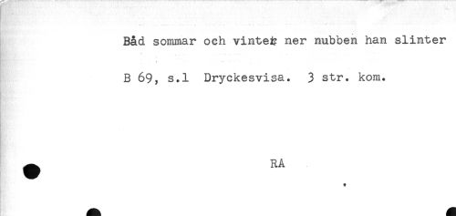 //// Bad sommar och vintei? ner nubben han slinter //// - //// \ . . -... -... //// H ... . //// B 69, s.l Dryckesvisa. 3 str. kom. //// * //// ^ RÅ ////
