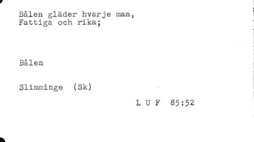 //// naien gj.aaer nvarje man, //// Fattiga och rika; //// Bålen ! //// ! //// ! //// Slimminge (Sk) - ! //// i //// L U F 85:52 ////