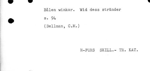 //// I Bålen winkar. Wid dess stränder //// ^ s. 94 //// (Bellman, C.M.) //// H-FORS SKILL.- TR. KAT. //// — - . , * ////