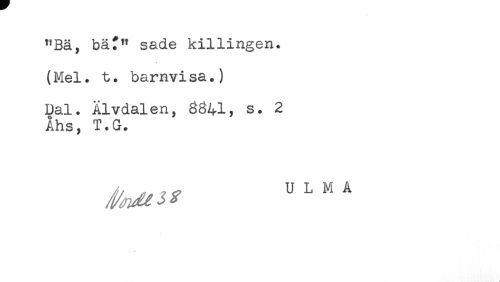 //// "Bä, bäf" sade killingen. //// (Mel. t. barnvisa.) //// Dal. Älvdalen, 8341, s. 2 //// Åhs, T.G. ////