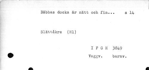 //// ! " *..... //// Bäbbas docka är nätt och fin... s 14 //// - //// - //// Slättåkra (Hl) ////