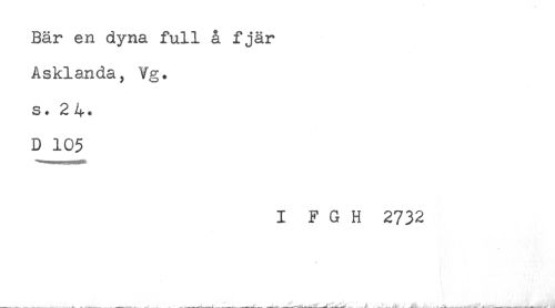 //// Bär en dyna full å fjär //// Asklanda, Vg. //// s. 24. //// D 105 //// I F G H 2732 ////