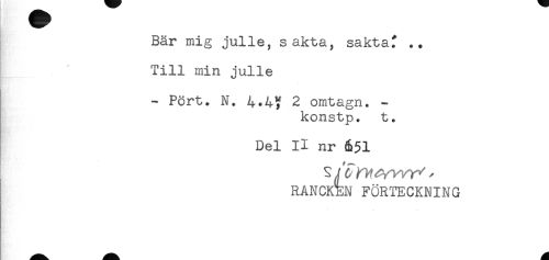 //// Bär mig julle, sakta, sakta? .. //// Till min julle //// - Pört. N. 4.4^ 2 omtagn. - //// konstp. t. //// Del II nr &51 //// RANCKEN FÖRTECKNING ////