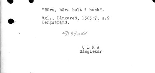 //// "Bära, bära bult i bank". //// ^ Vgl., Långared, 1505:7, s.9 //// ^^ Bergstrand. //// I * ^Z) //// U L M A //// Sånglekar ////