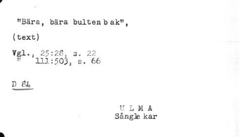 //// "Bära, bära bulten b ak", //// (text) //// Vgl., 25:28, s. 22 //// " 111:503; s. 66 //// D ////