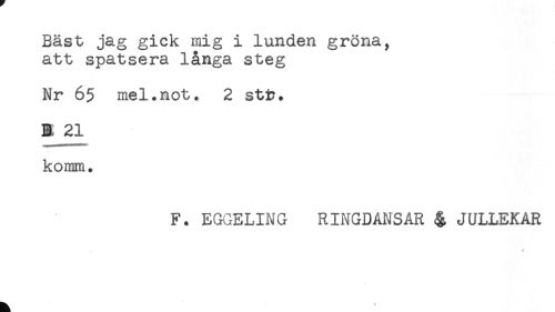 //// Bäst jag gick mig i lunden gröna, //// att spatsera långa steg //// Nr 6$ mel.not. 2 stt?. //// n 21 //// komm. ////