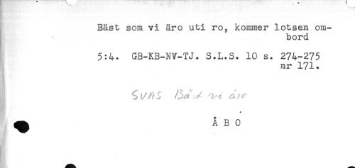 //// Bäst som vi är o uti ro, kommer lotsen om- //// I - bord //// . //// 5:4. GB-KB-NV-TJ. S.L.S. 10 s. 274-275 //// nr 171. ////