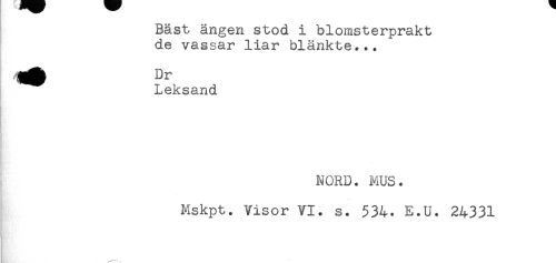 //// Bast ängen stod i blomsterprakt //// de vassar liar blänkte... //// ^^ Leksand //// NORD. MUS. //// Mskpt. Visor VI. s. 534- E.U. 24331 ////