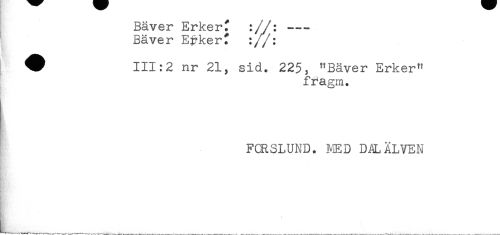 //// Bäver Erker. :/y: ---- //// Bäver E#kert : /y: //// ^ 111:2 nr 21, sid. 225, "Bäver Erker" //// fragm. //// t //// FCRSLUND. NED DALÄLVEN //// . //// * ////