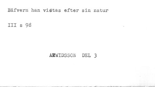 //// Bäfvern han vidtas efter sin natur //// III s 96 //// AEWIDSSON DEL 3 ////