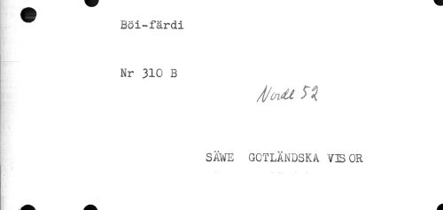 //// ^ Böi-färdi //// Nr 310 B //// SÄWE GOTLÄNDSKA VE OR //// -- -- ... ////