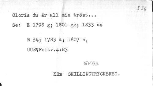 //// J //// Cloris du är all min tröst... //// * * //// Se: E 1793 g; 1801 gg; 1333 ss //// i //// ) //// N 54; 1733 a; 1807 h, i //// i //// UUB?Folkv.4:33 //// ! //// } //// KBs SKILLINGTRYCKSREG. ////