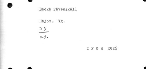 //// Racka rävenskall //// Hajom., Vg. //// D 3 //// IFGH 2926 ////