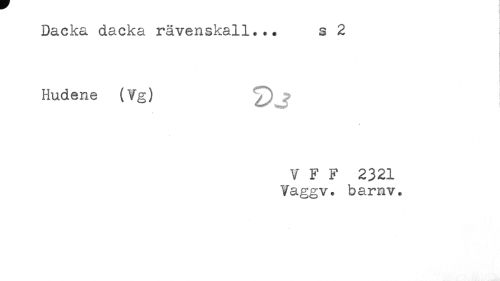 //// Dacka dacka ravenskall... s //// - //// t //// i //// Hudene (Vg) //// V F F 2321 //// Vaggv. barnv. ////