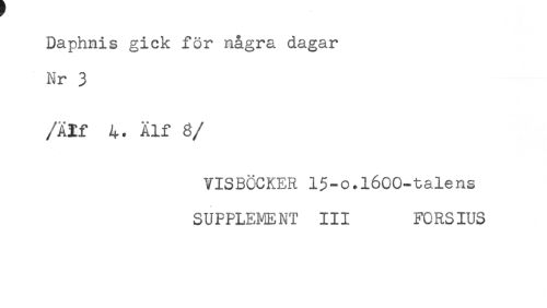 //// Daphnis gick för några dagar //// Nr 3 //// /Alf 4. Älf 8 //// /VISBÖCKER 15-o.l6CO-talens //// SUPPLEMENT III FCRSIUS ////