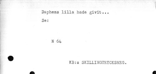 //// ) r //// Daphens lilla hade givit... //// Se: //// ! //// ! //// N 64 //// KB:s SKILLINGTRYCKSREG. ////