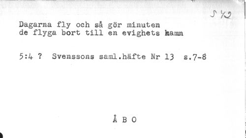 //// Dagarna fly och så gör minuten //// de flyga bort till en evighets hamn //// 5:4 ? Svenssons saml.häfte Nr 13 s.7-8 //// ! //// t //// j //// f //// H ////