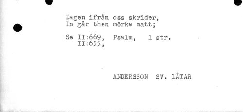 //// Dagen ifrån oss skrider, //// ^^ In går then mörka natt; //// Se 11:669, Psalm, 1 str. //// 11:655, //// ANDERSSON SV. LÅTAR //// Eg** ... * . < ////