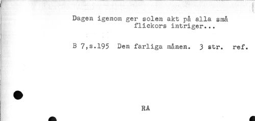 //// * //// Dagen igenom ger solen akt på alla små //// ' flickors intriger... //// * - //// B 7,s.l95 Den farliga månen. 3 str. ref. //// É- //// RA ////