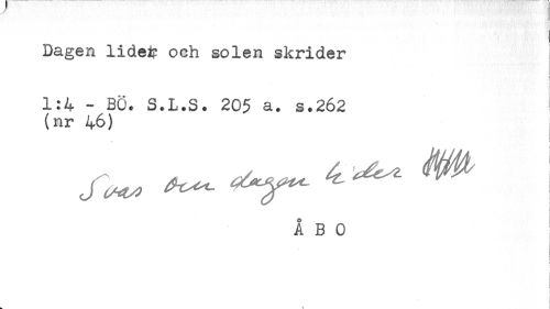 //// Dagen lide# och solen skrider //// ! //// 1:4 - Bö. S.L.S. 20$ a. s.262 //// (nr 46) //// ÅBO //// j //// ) ////