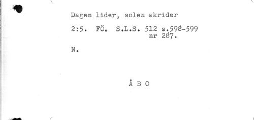 //// Dagen lider, solen skrider //// 2:5. FÖ. S.L.S. 512 s.598-599 //// nr 28?. //// N. //// ÅBO ////