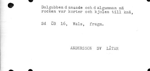 //// ^ uaiguDoen a. ansade och d algurnrnan mä //// rocken var korter och kjolen till knä, //// Sd ÖB 16, Vals, fragm. //// ANDERSSON SV LÅTAR ////