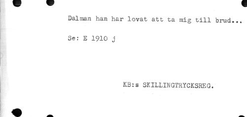 //// Dalman han har lovat att ta mig till brud... //// Se: E 1910 j //// KB:s SKILLINGTRYCKSREG. //// ** - ////