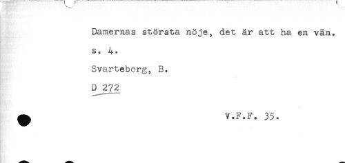 //// Damernas största nöje, det är att ha en vän. //// s. //// Svarteborg, B. //// 0^272 //// < //// ^ V.F.F. 35. ////